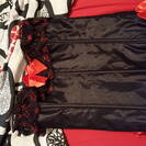 Corpetto nero e rosso con stringhe posteriori. Bellissimo
